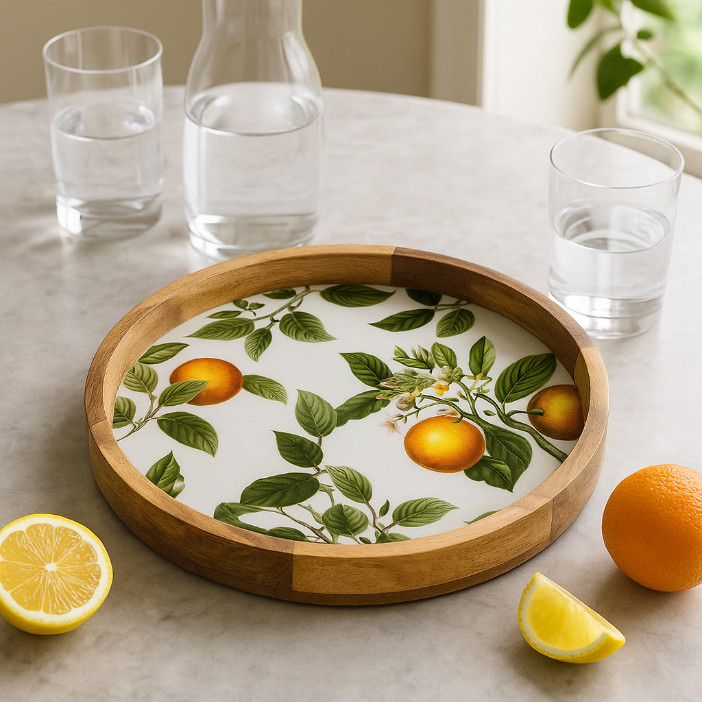 Handcrafted Orange Blossom Round Wooden Tray 30cm