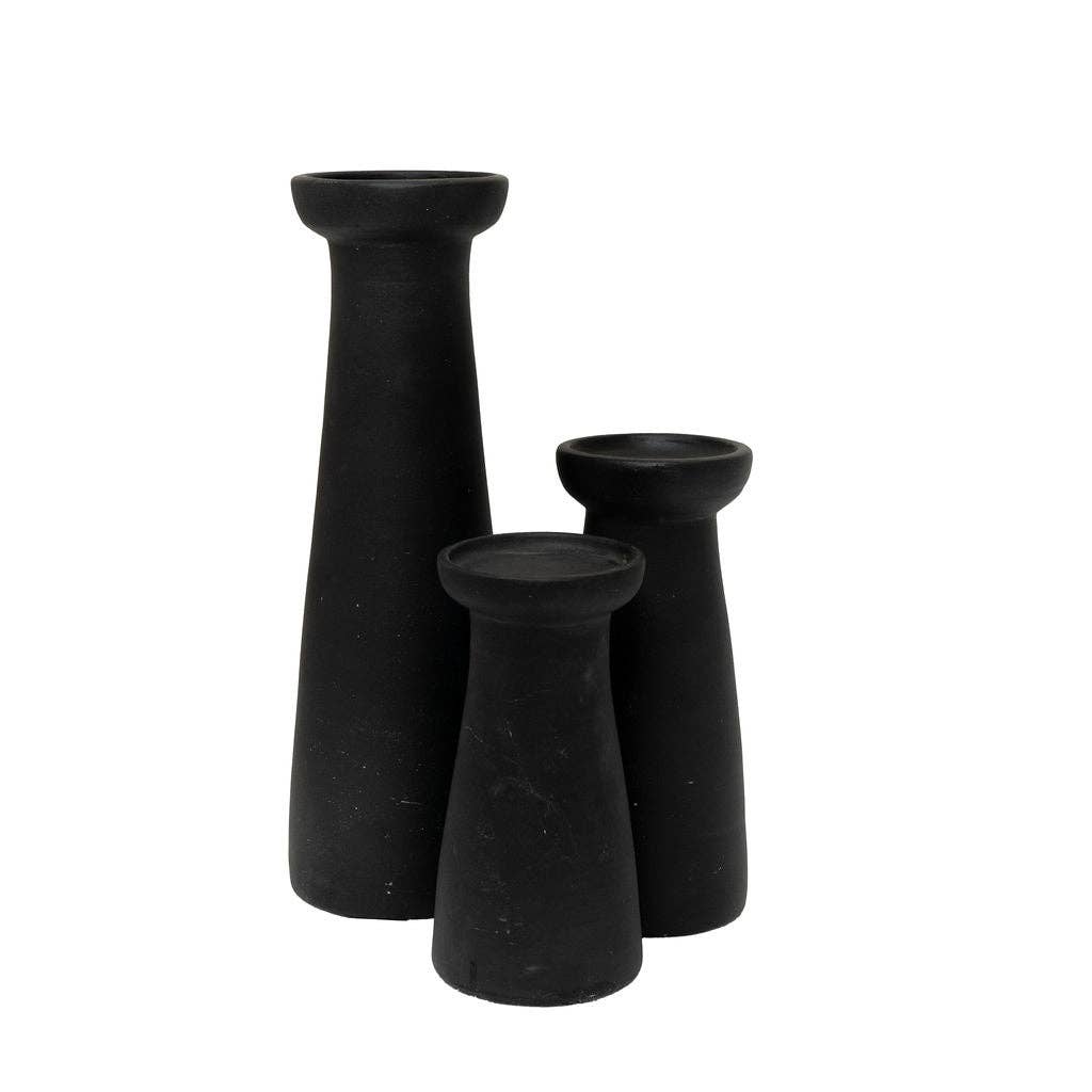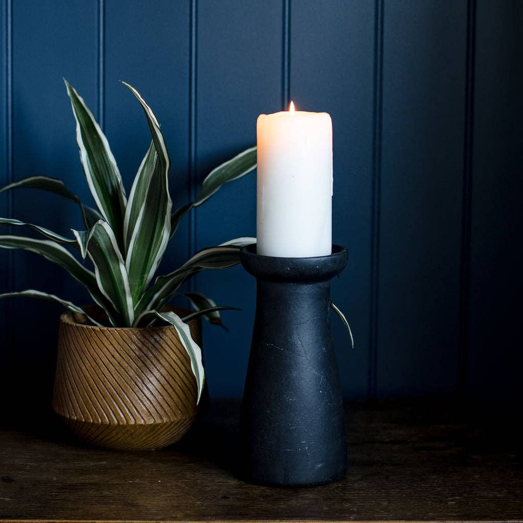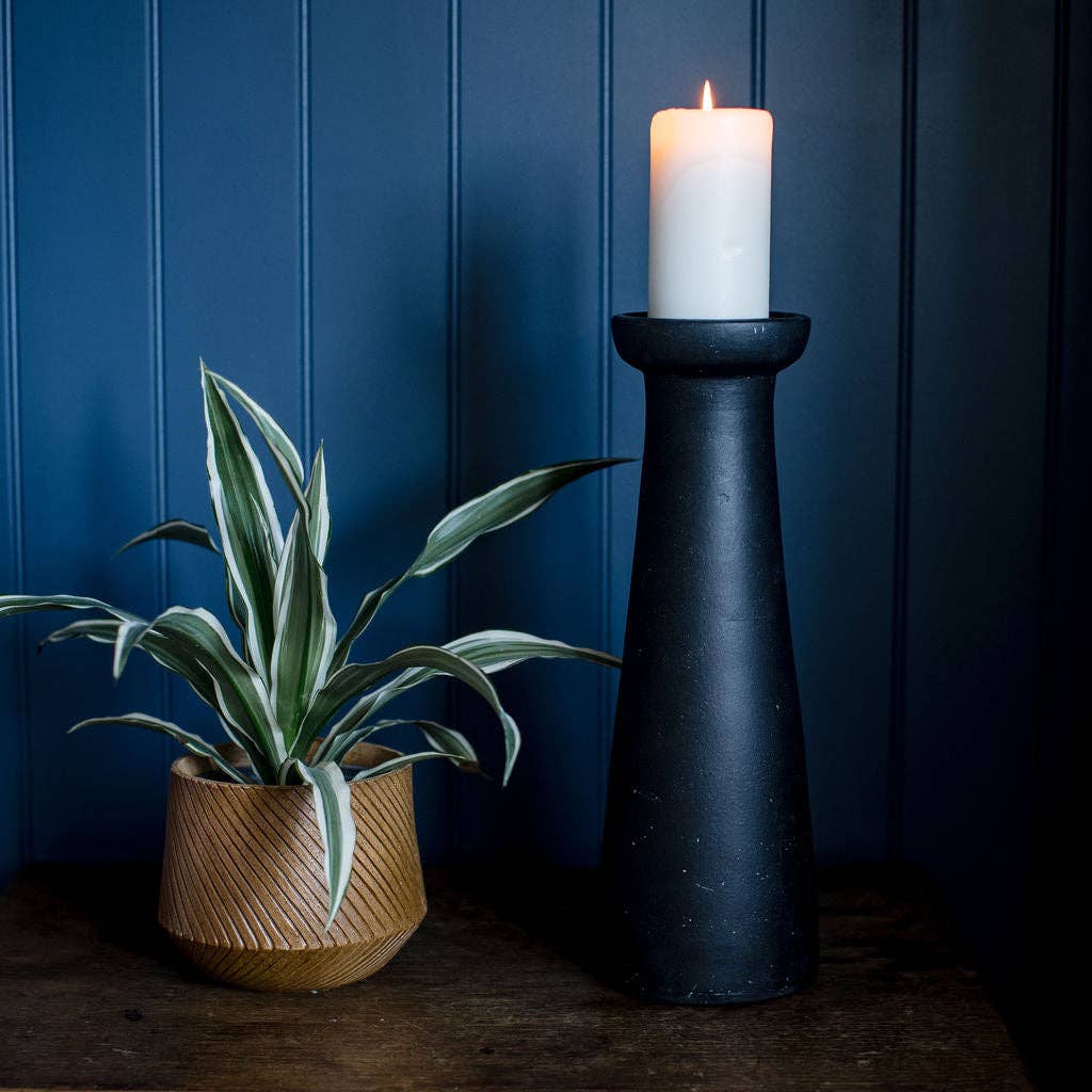 Irthing - Black Terracotta Large, ChunkyPiller Candle Holder: Large