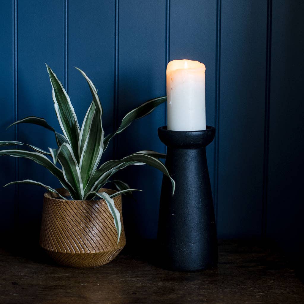 Irthing - Black Terracotta Large, ChunkyPiller Candle Holder: Small