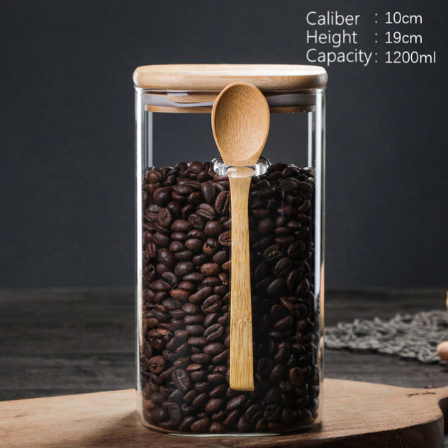Glass Storage Jar with Bamboo Lid | Food Storage Jar | Glass Coffee Containers | Kitchen Organiser | Coffee Jar | Kitchen Storage Jar
