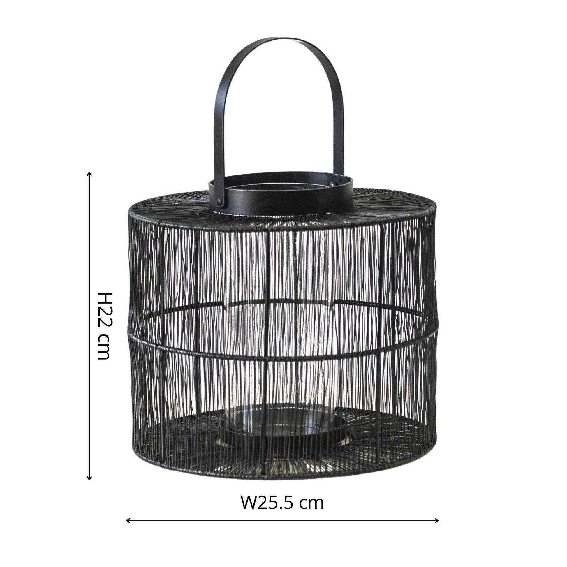 Helping to create a restful and intimate environment while you entertain or unwind, our Portofino wirework lantern with glass insert is the perfect centrepiece for your dining table or outdoor furniture. It's single handle completes an elegant finish while the tall design provides endless possibilities for what you place inside. Key Features: - Premium quality - Suitable for outdoors Available in two sizes. Small - Height 22cm x Width 25.5cm x Depth 25.5cm. Use: Outdoor