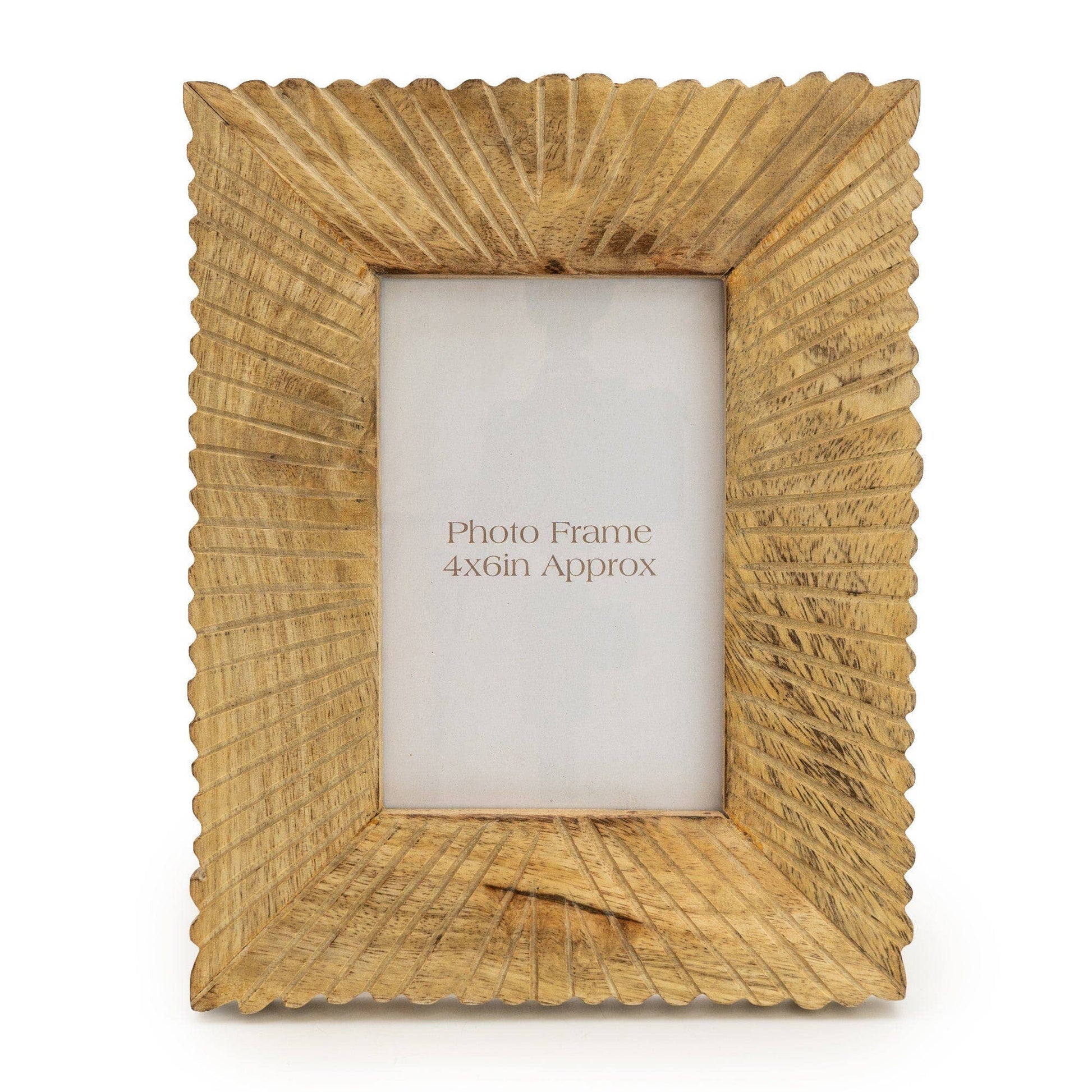 The 4x6" mango wood photo frame is a beautiful way to showcase any image. This ornate frame features etched lines, making it ideal for home or office décor.